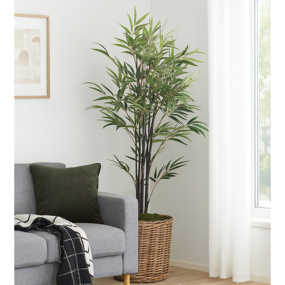 Mit seinen detailreichen Blättern und natürlichen Farben bietet dieser künstliche Bambus eine authentische Optik.